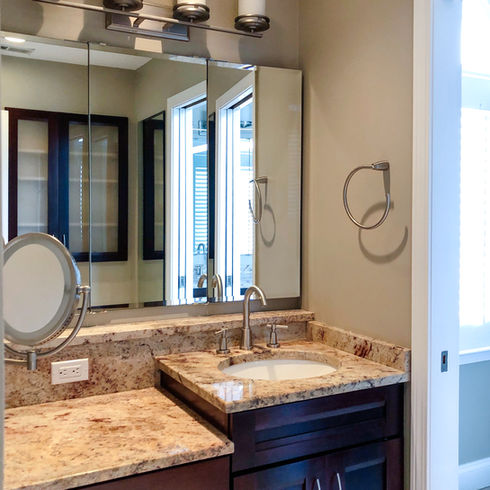 After the remodel, we got back the entirety of the square footage of the bathroom, with a corner tiled shower, new soaking tub, and a brand new double vanity.